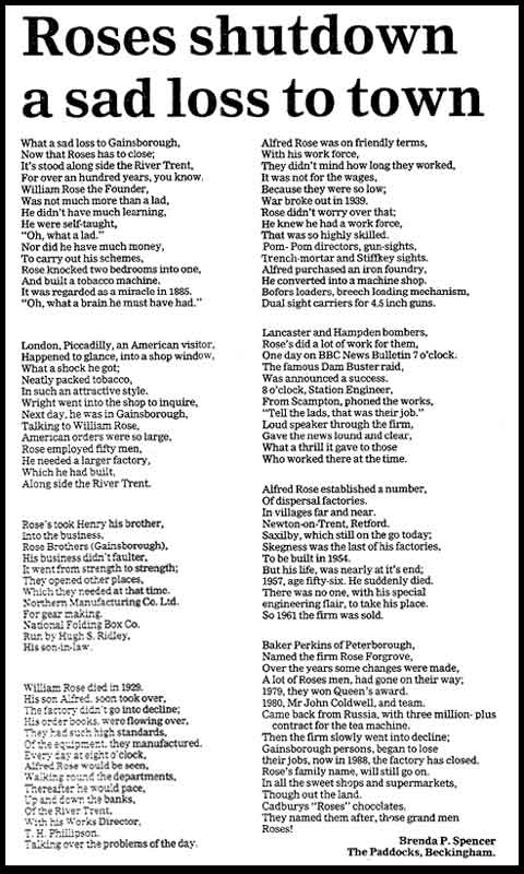 The EndIn October 1987 the closure of the Gainsborough factory was announced and the business was transferred to Rose Forgrove Ltd at Leeds.