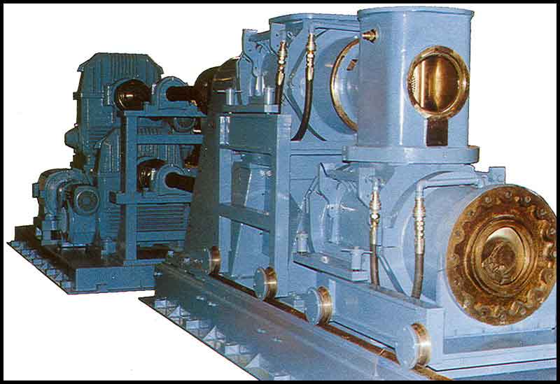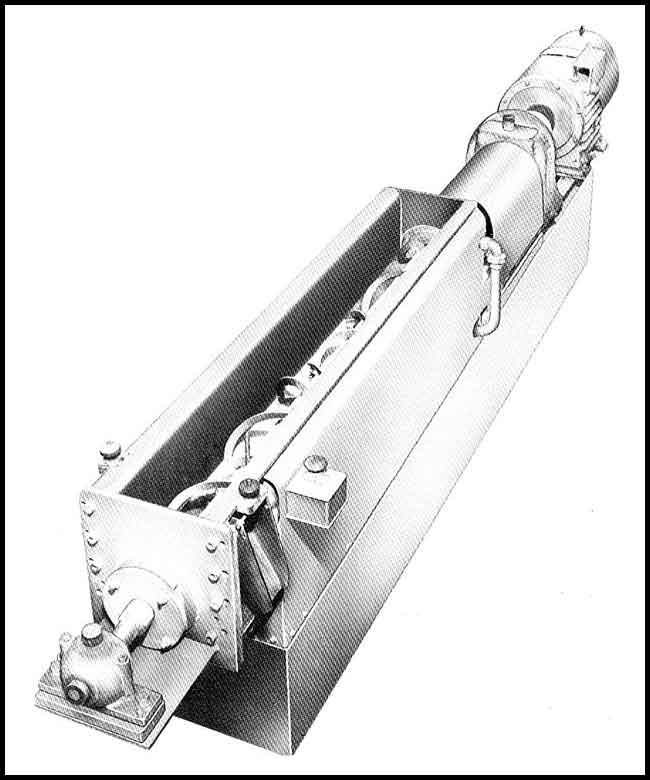The Chemical Division post - 1954The Chemical Division was formed with the remit to develop its activities. It was housed in the Orlit building on the car park that had been built as a temporary structure during WW2 (See Outside Views). John Peake recalls - "I remember the Orlit building very well as I spent some time in it as the manager of the newly formed Chemical Division - I think that this was in 1954. Previously , the sales staff were with all the other sales departments and likewise those in the drawing office were with all the other drawing office staff on floor 2 or 3 of the main building. It was obvious that we all needed to be in the same place and the Orlit building was the solution (we were following the divisional approach as in Saginaw). It had been my recommendation that a division should be formed following my visit to Saginaw for Barton Baker to study their activities. I thought that I might get a job in a new chemical division if it was formed but didn't dream that I would be put in charge!" The approach initially was to try to build on existing business with which the division already had an entrée, usually through sales of Universal mixers. Although there was an intention to develop new products of its own design, it was realised that this would be slow. To make progress more quickly it was accepted that sales and manufacturing licences from established companies should be sought. John Peake considered that – "Chemical engineering operations could be classified under a number of headings, including – mixing, separation, size reduction, heat exchange, distillation, evaporation, etc. We were already in mixing and Baker Perkins Inc was in separation through the centrifugals of Escher Wyss with whom we would not try to compete. Evaporation and distillation generally involved chemical plant – as opposed to machinery - in which we were not interested. We did investigate opportunities in size reduction (grinding) and, after dismissing huge machinery like rock crushers, looked for innovation at the smaller end of the market. One invention, by a man named Leccas, purported to achieve size reduction of particles by using a high-speed rotor to force them into areas of very high turbulence. In this situation, it was expected that the particles would cannon into each other and be shattered. In the event, we were not satisfied about the efficiency of the machine and gave up any further quest in this market sector. Dennis Wheeler, recruited as a chemical engineer, spent some time with Baker Perkins Inc in Saginaw and brought back the opportunity to exploit a mechanical heat exchanger, having rotating blades that wiped the viscous substance over a series of heated or cooled plates much like in a Microfilm sugar cooker (See also History of Baker Perkins in the Chocolate & Confectionery Business). After one major installation for an Italian customer, this venture was dropped". A venture into separation in the mining industry was investigated later, in 1960, using Tetrabromoethane, but with little success – see details below. An early task was to safeguard the marketability of the range of Universal mixers. After the War, the nature of the materials to be mixed had begun to change as plastics became more popular. Mixes were more viscous and problems arose with blade deflection. During 1956/57, the whole Universal mixer range was re-designed, with the old design labelled the "Size" range and the new known as the "Gallon" range. The "Size" range had a wide trough, hence, for the same capacity, a smaller trough radius – the "Gallon" range having a narrower trough and larger blade radius. The bearings on the "Gallon" range were closer together, the blade section increased and the blade deflection problem was overcome. The New Plastics Machinery TeamThe plastics industry was considered an attractive target because it was expanding and a separate plastics division was set up. B.S.C. (Brian) Quint was recruited to concentrate on this area and P.W. (Peter) Ashton, a chemical engineer, also joined and preliminary work began on the specification of a plastics extruder. Brian Stanley designed the 3½" plastics extruder and was also involved in the 1½" and 2" extruders that used the same gearbox with interchangeable barrels. As that progressed R.W. (Roy) Doone, who had previous experience of extruder design was recruited. A test centre under Peter Hornsby was set up in a room at the far end of the Machine shop near to the railway. Peter Hornsby remembers: "In the late 1950s, for commercial or technical reasons, Baker Perkins bought into other companies in the United Kingdom involved in the manufacture of machinery that could use Baker Perkins know-how or be produced at Westwood works. In the later half of the 1950s Peter Ashton, as part of his remit, looked into entering the then developing plastic machinery markets. John Peake, along with his other responsibilities, was to oversee this development. Following Peter Ashton’s findings, the decision to proceed was given and Roy Doone was recruited from the plastics machinery manufacturer, Peco. He was the section leader with the responsibility of deciding the range of machines to be made and developed. The first machine designed and put together was the 1½ “ diameter plastics extruder. The unit was designed by Brian Stanley and assembled, by me, in a separate room within the Chemical Experimental Department. (See also The Experimental Department). It was to be a multi-plastic material unit capable of extruding polyethylene, Poly Vinyl Chloride (PVC) and nylon. Each material has its own melt characteristic, hence three barrel sections were made. The screws needed to force the heated plastic through dies, with whatever profile was called for, had to be in three lengths, 20 to 1 length/diameter for polythene, 15 to 1 for the more heat sensitive P.V.C. and 10 to 1 for polyamide (nylon) which had a rapid transition from solid to liquid. 