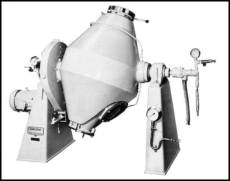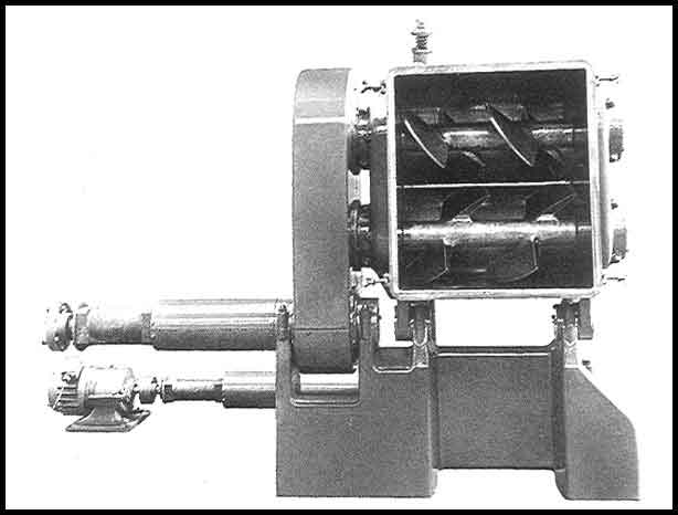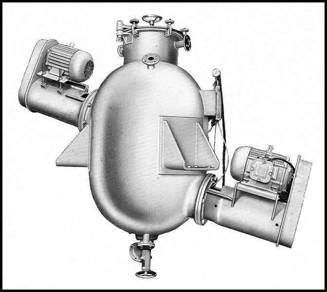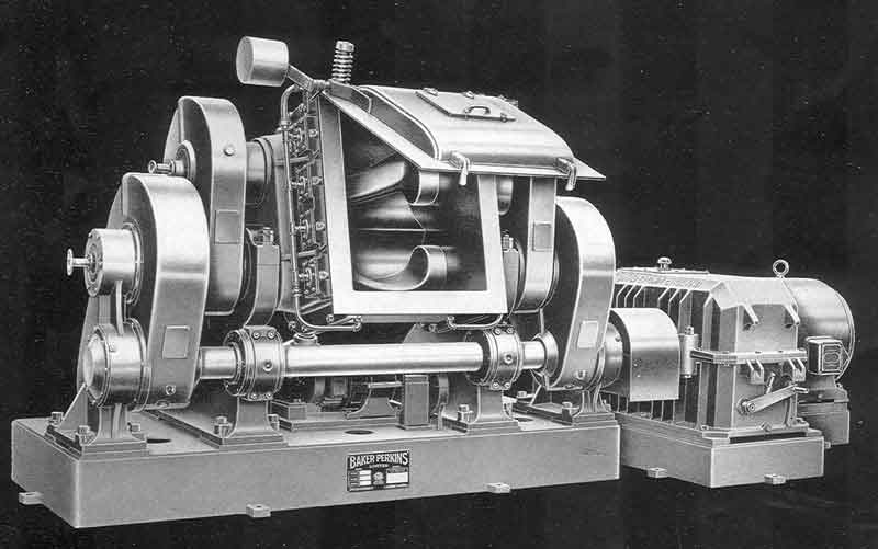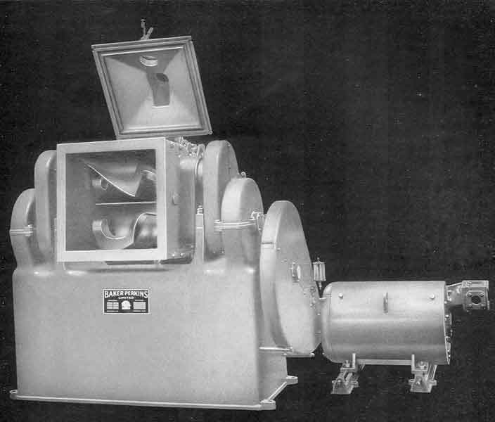BAKER PERKINS IN THE CHEMICAL MACHINERY BUSINESSIt has always proved difficult to determine what is meant by "chemical" in the context of Baker Perkins’ historic development. "Food" is very clear cut – bakery, biscuit, chocolate and confectionery are all relatively easily defined market areas and the processes and machinery developed for each are instantly recognisable. However, many of these machines process basic raw ingredients, the characteristics of which are not dissimilar to many others used in a wide range of other industries. A sifter can, within reason, sift "chemicals" as easily as it can sift flour or sugar, a mixer can mix ingredients of similar viscosities almost regardless of their basic constituents, etc., etc. It is when the process demands specific conditions of ingredient feeding, temperature, hygiene, materials of construction in contact with the material being processed, discharge arrangements and so on, that the opportunity arises to develop a new version of a basic machine and market it to different industry sectors. This has undoubtedly been the case throughout the history of Baker Perkins and its constituent companies and it is therefore tempting be very simplistic and suggest that "anything that isn’t food is chemical". The birth of the "Universal" Mixer