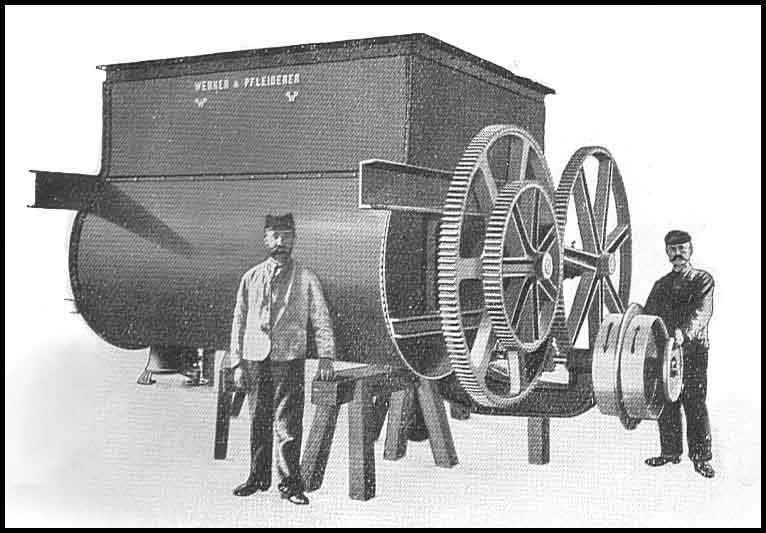 Baker Perkins’ involvement in the chemical machinery business can be traced back to 1873 when Paul Pfleiderer, a naturalised German, born on 1st January 1848, came to England to set up a business selling the "Universal" Mixer. This was the invention of a German named Freyburger who had sold "the world rights for all time’ to Pfleiderer for 900 marks (about £45). Pfleiderer immediately took out an English patent for the machine and established himself as the "inventor of the Universal Mixer" contracting for the supply of machines embodying "his principles". He also sold equipment imported from the Mixing and Kneading Machinery Works of Cannstatt, Stuttgart, Germany, owned by Hermann Pfleiderer & Company. In 1880, Hermann Werner took control of the Hermann Pfleiderer works, formed the firm of Werner & Pfleiderer and took control of the agency that Paul Pfleiderer had created at Upper Ground Street, London.