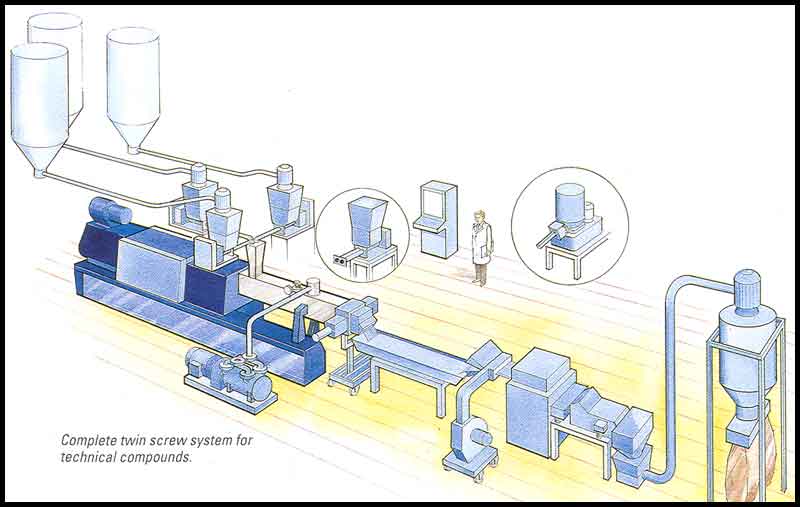 1970 also saw the opening of the $1 million chemical machinery research centre at Saginaw. The centre was equipped with customer conference rooms, eight test cells (one specifically equipped for handling hazardous or flammable test materials) and a chemical analytical laboratory. As part of the UK Ministry of Technology’s drive to strengthen the British plastics industry and to meet the ever-growing demand for plastics in the UK market, it placed a £34,000 order in early 1970 for six Steele & Cowlishaw "Drydispersers" to be installed in the several British companies for extensive tests under production conditions. The "Drydisperser was used by the plastics industry to compound or blend materials before extrusion or calendaring. In 1973, Steele & Cowlishaw acquired Advisory and Component Services Ltd of Weybridge. The company specialised in plant designed for the plastics industry and was to form the nucleus of a new division to handle this opportunity. During this same period, Saginaw’s Chemical Machinery Division were marketing a full range of batch and continuous mixers for the production of such diversified products as high strength colour pigments, anode and cathode paste for aluminium reduction, solid rocket propellant and the compounding of plastics. Pusher type centrifuges and liquid-liquid contactors/separators were also offered to the Chemical industry. Saginaw was proud to state that over 90% of the free world’s penicillin was being produced using Baker Perkins contactors. It is interesting to note in this context that Steel & Cowlishaw were claiming in 1966 that - "most penicillin used in Britain is milled in Steel-Shaw fluid energy mixers". The versatility and market possibilities of the multi-purpose twin-screw machine were becoming more apparent each year to Saginaw. In 1973, Saginaw had successfully started up a 24" diameter reactor for a chemical complex, received an order for a complete line for toner for copying machines and installed a compounding line for a proprietary engineering plastic. Re-organising to meet world demandThe group’s chemical machinery business entered a new phase in February 1974 with the formation of Baker Perkins Chemical Machinery Ltd., a new company headquartered in Peterborough. It incorporated what was the chemical division of Baker Perkins Ltd, Steele and Cowlishaw Ltd and the European marketing organisation of Baker Perkins Inc. C.R.A. (Bob) Senior – the then group marketing manager - was appointed chairman and the new company was responsible to F. (Fred) Giordiano, vice-president and general manager of Baker Perkins Inc’s chemical machinery division. Baker Perkins Chemical Machinery (BPCM) was to serve the chemical and process industries throughout Europe and adjacent countries, with the UK factories not only manufacturing for the new company but also marketing products made in Saginaw. This meant that continuous mixers and centrifugal machines were available for sale in the UK for the first time. At the same time, Saginaw were developing compounding and pelletising machinery for plastics reinforced with fibreglass. It was hoped that this would lead to participation in the world growth of glass-reinforced plastic. In 1976, Baker Perkins Inc. entered into a long-term reciprocal agreement with Thomas Broadbent & Sons Ltd of Huddersfield involving the mutual licensing of their respective centrifugal machines. Baker Perkins was to manufacture and market the Broadbent solid bowl, screen bowl, vertical batch and sugar centrifugals in the USA. Thomas Broadbent was to get the same rights in the UK for the Baker Perkins pusher and small, special purpose solid bowl units. At Stoke, manufacture of small M-P twin-screw mixers, previously made for Saginaw by an outside supplier, were under construction. In return, Saginaw was test marketing several Stoke designed machines in the USA – the Hydisperser, Drydisperser and the Granulator. Two of Baker Perkins Inc’s machines were never considered for manufacture in the UK – the Vertical mixer for energetics and the Podbielniak Contactor. As well as the machines previously mentioned, among the machines being marketed at that time were: Saginaw received Chemical Processing magazine’s John C. Vaaler Award again in 1976. This time it was for the development of the Uni-Axis TM Mixer. By the 15th September 1977, all "chemical" personnel located at Peterborough had moved to the original premises of Steele & Cowlishaw at Stoke-on-Trent that had become the new headquarters of BPCM. A new laboratory for demonstration, development and research on heavy mixing and compounding equipment was operational by the end of September. (See also History of Baker Perkins Chemical Machinery Ltd.). In 1978, Baker Perkins Inc announced the signing of an agreement with Durr & Clay Investments Corp. of Indianapolis that gave Saginaw exclusive manufacturing rights and non-exclusive marketing rights in the USA for DCI’s range of Dyna products. These were used in the recovery of solvents from liquid or gaseous waste streams. In early 1978, Baker Perkins Holdings acquired Malaxeurs Guittard of Paris, continuing the groups’ rationalisation and expansion of its chemical and allied interests in Europe. The acquisition also gave Baker Perkins its first wholly owned manufacturing facility on the continent of Europe. Guittard produced a wide range of batch mixers for many "chemical" type applications. Guittard became the design and manufacturing centre for the Universal mixer. Apart from their new range of screw discharge universals there was a need for another updating exercise as had been carried out in the 1950’s. Plastics Compounding MachineryAt Stoke, BPCM concentrated on the design and testing of polymer compounding systems for the plastics industry. The MP2000 twin screw compounder gained significant success in a number of market sectors including powder coating materials; masterbatch compounds and colour concent