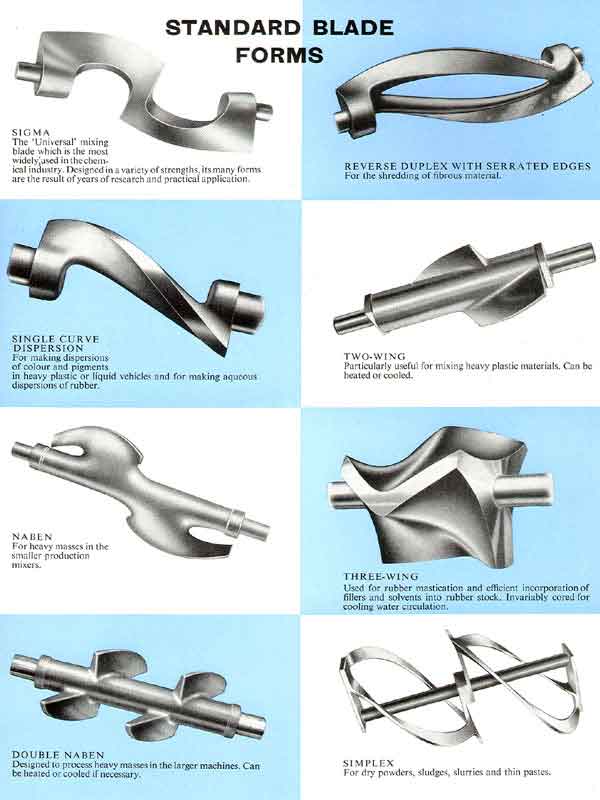 Many hundreds of Baker Perkins machines were in service in leading chemical, aerospace and research facilities all over the world. Laboratory mixers allowed customers to evaluate processes and products in the customer test and demonstration facilities at Saginaw and Stoke. The range of available equipment included: