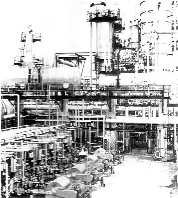 By 1962, Baker Perkins were building the entire range of Troester cold-feed and hot-feed rubber extruders for sale in the UK. A magazine article of the time commented – "Baker Perkins offer, free of charge, demonstration facilities for evaluation of clients' stock using, if need be, clients’ dies and this offer is of more than casual interest in view of the competition which is likely to shortly faced from the Continent". The first use of the name "Baker Perkins Chemical Machinery Limited" (BPCM) was in 1962 when a company was formed to include the new acquisitions, Granbull and Steele & Cowlishaw together with the existing chemical and rubber m/c departments at Peterborough. An Export Division of BPCM was established in July 1965, under J.S.H. Rodman, that operated from the Baker Perkins Export Company’s offices in London. It was responsible for the overseas sales of all equipment manufactured by Baker Perkins Granbull and all equipment used in the plastics industries manufactured by Baker Perkins Chemical Machinery Ltd. and Steele & Cowlishaw. Baker Perkins was supplying cold feed rubber extruders in 1965 for producing braided hose and rubber mouldings – window frame and windscreen extrusion, stair nosing, etc. The cold feed process claimed advantages over hot feed – lower power costs, more consistent extrusion and greater versatility allowing smaller runs to be made economically for specialist product markets. Bulk Materials Storage PlantBaker Perkins Inc had been selling equipment for conveying flour pneumatically and this technology was also taken up by the food machinery divisions at Peterborough. It is perhaps one of their less well remembered activities but, in the mid-1960s, a small team including Arthur Ferns, Ken Hanson, Tom Digby and Jim Kemp was engaged in this operation within Baker Perkins Ltd’s chemical division, during which time many complete plants were installed in UK and abroad. In fact, Baker Perkins contributed some pioneering work in this field as shown by various published papers at the time. Typically, these plants comprised large capacity silos for bulk storage of materials, delivered on site by road or rail tankers. The contents of the silos were discharged on demand through rotary valves or directly into pressure vessels. (BP undertook considerable experimental work in the development of pressure vessels for this application). When the pressure vessel was filled, as indicated by a high level probe, compressed air was applied and the contents of the vessel were conveyed through pipe work, often over long distances, to various destinations. Pneumatically controlled diversion valves could be installed in the pipeline to direct material to multiple points of usage, on demand. Cyclone filters could be used to separate the conveyed material from the conveying air. Some of the materials to be conveyed were highly abrasive when transported in a fast moving air stream and BP developed special wear resistant bends with silicon-iron liner plates to reduce the problem of bend wear, which became the industry standard. The automatic control system to enable the entire plant to be operated with minimal labour supervision was an important engineering and sales feature of these plants and required considerable expertise on the part of the plant design engineer. One order, received in 1966, was for storage and handling equipment for installation in a £30 million polyester fibre plant to be erected in Russia. The plant was to produce 50,000 tons of man-made fibre per year. It was, at the time, the most valuable order that the chemical machinery division had won. Four Baker Perkins men – Don Jeneson, Keith Dewberry, Jack Butter and George Watton - spent two years working on equipping the 300 acre site at Mogilev 100 miles from Minsk and 320 miles south-west of Moscow. In 1967, the Peterborough chemical machinery division supplied two 320 feet long leaching ranges to Porous Plastics Ltd, Kings Lynn. These were used for the manufacture of separator plates for car batteries. Baker Perkins also supplied the powder handling plants, high speed mixing equipment and their control panels. Two of the largest ball mills made thus far by Steele & Cowlishaw left their factory in early 1967. 9 feet in diameter and 9 feet long, jacketed and aluminium lined, each weighing 30 tons and each driven by a 100 HP motor, the mills were to be used for the fine grinding of a special chemical used in a variety of industries. Steele & Cowlishaw also designed and produced a plant, consisting of a reactor and blender, used in the manufacture of high-grade industrial oils. In the same year the Peterborough rubber division supplied a cold feed extruder to produce material for re-treading tyres – a regular feature of those days when road safety was subject to less stringent laws than today. As if to prove the previously suggested supposition that "if it's not food – its chemical", Westwood’s chemical division manufactured 17 coin minting presses for the Royal Mint in 1967/68. These were part of the UK’s changeover to decimal currency that was due to be completed in 1971. The Podbielniak Contactor